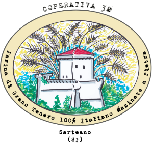 La macinazione è effettuata con un mulino a pietra che garantisce il mantenimento delle proprietà organolettiche del prodotto. La coltivazione del cereale viene fatta sui territori dei comuni circostanti le aziende Sarteano e Radicofani.